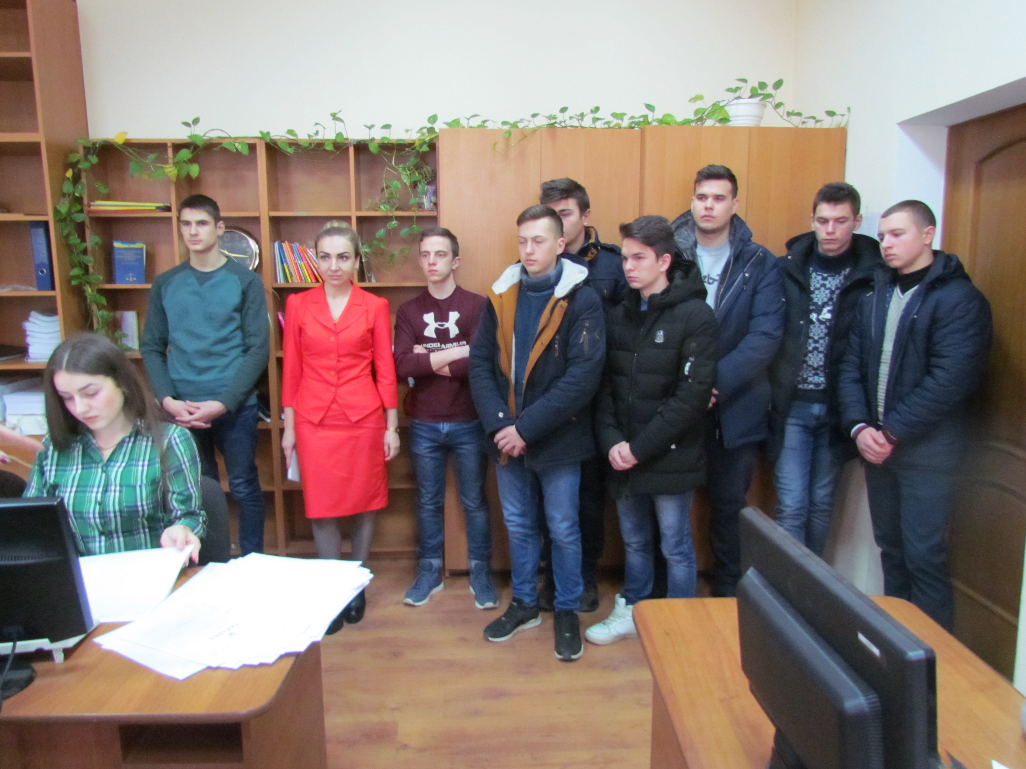 Найцікавішим моментом для майбутніх правників в межах організованого заходу стало відвідання чотирьох судових засідань, в яких розглядались адміністративний матеріал відносно неповнолітньої особи та обвинувальні акти у кримінальних провадженнях щодо осіб, які підозрюються у вчиненні кримінальних правопорушень, передбачених ст. ст. 185 (крадіжка), 190 (шахрайство), 289 (незаконне заволодіння транспортним засобом) КК України. Таку можливість для студентів надав суддя Руслан Каленяк до компетенції якого віднесено розгляд кримінальних проваджень. Крім того, Руслан Анатолійович поділився із першокурсниками власним досвідом розгляду резонансних справ, розповів про зміни в чинному законодавстві та те, як вони впливають на роботу судді. Наприкінці розмови суддя закликав студентів ретельно вивчати та неухильно дотримуватися законів, адже в сучасному світі це необхідність для кожної свідомої людини, а для майбутніх служителів Феміди – особливо.