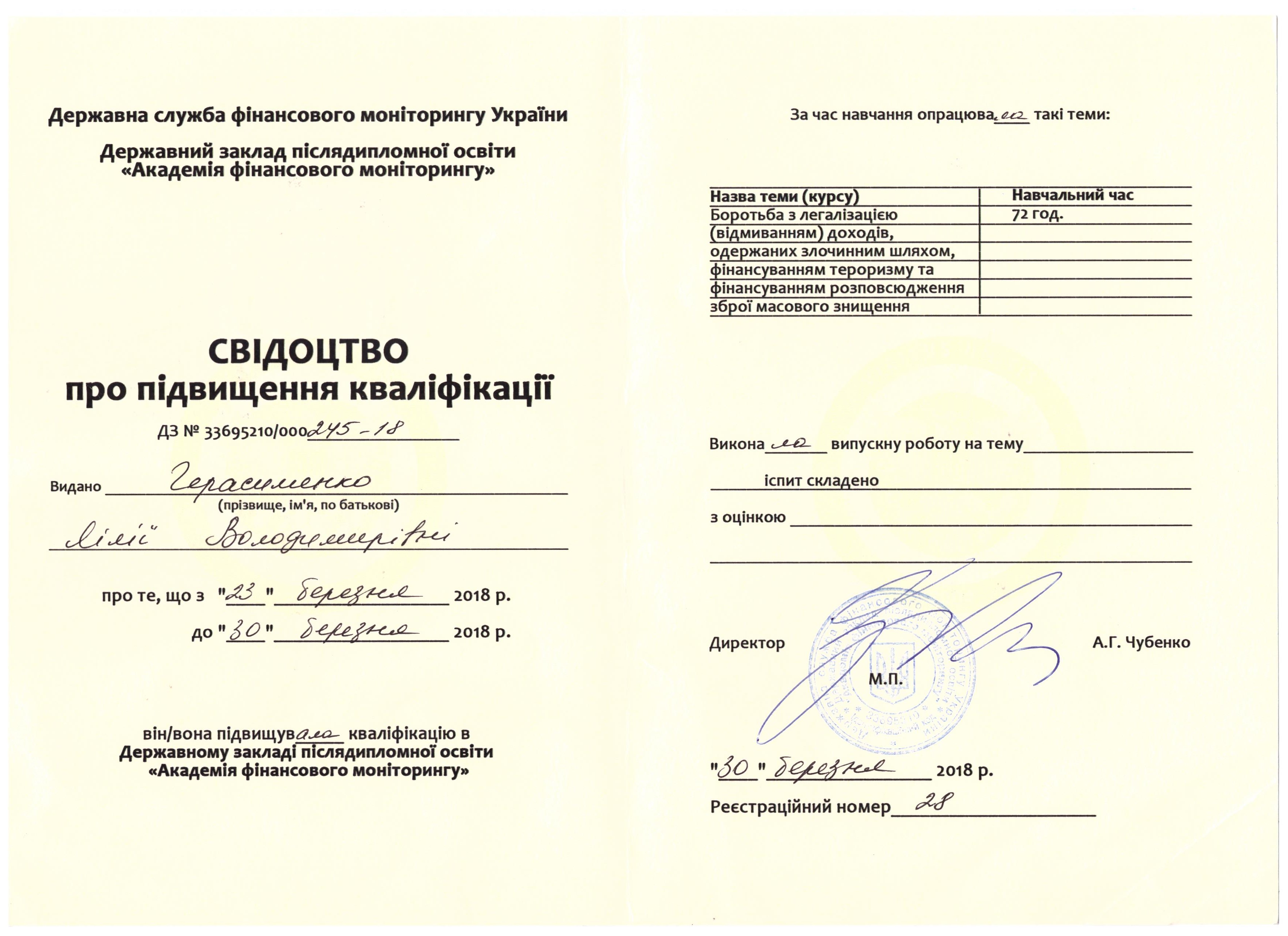 По закінченню курсу Олександр Капкін та Лілія Герасименко отримали відповідні свідоцтва.